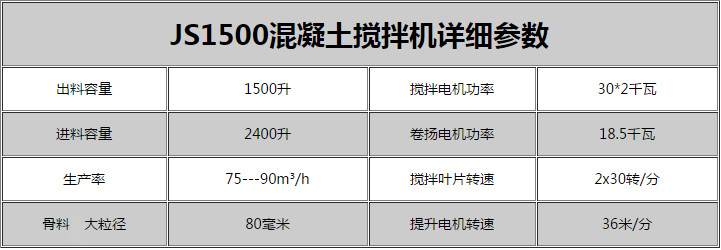 js1500混凝土攪拌機主要用于HZS75/90混凝土攪拌站主機,生產能力75/90m3/h,價(jia)格咨詢:13298133255(微信同號)。