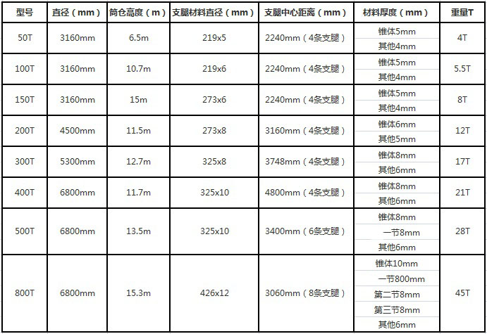 2、水泥倉(罐)適用于裝散裝水泥及干造的粉煤灰,具有防雨,防潮,使用方便等特點;一般有50t,100t,200t,300t,400t,500t等規格,也可根據用戶要求的尺寸制作。